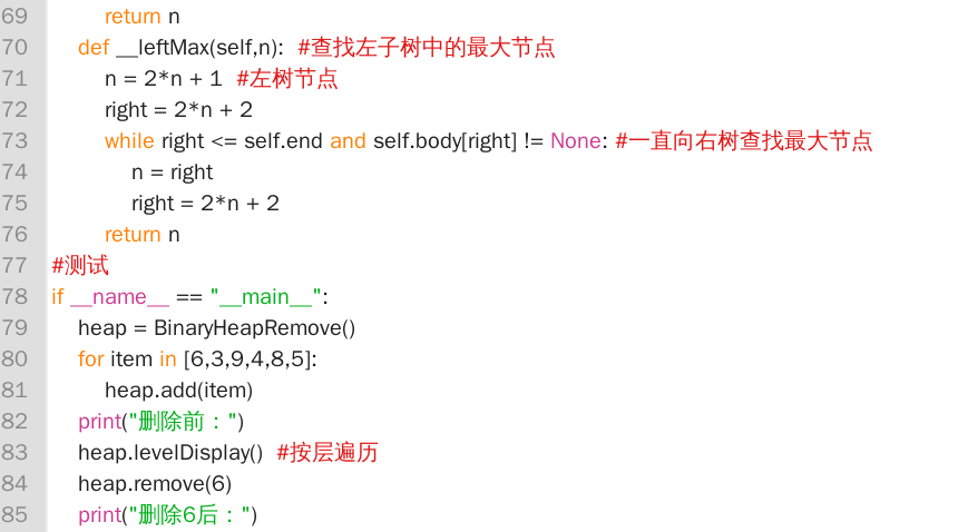 二叉堆的节点删除和完全二叉树的节点删除基本一样,请查看第二十五课 完全二叉树。根据完全二叉树节点删除的代码稍作改动就可以完成二叉堆节点的删除。主要的对应关系是:左指针对应与2*n+1;右指针对应于2*n+2。