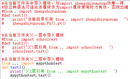 模块引用当前目录和子目录中的模块,上面都写明了;如果是子目录中的模块要引用父目录中的模块,那应该怎样呢?在各级目录中添加一个测试模块如下: