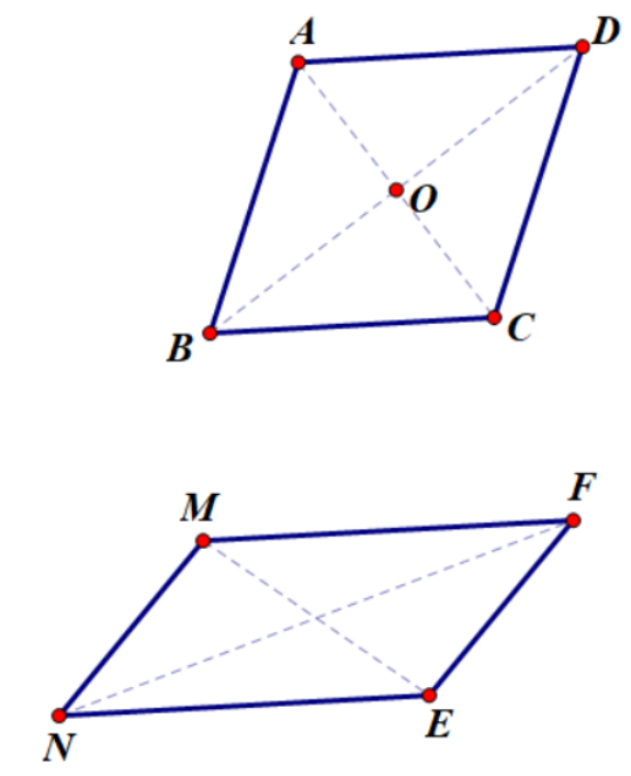 如下图,比较菱形的对角线和平行四边形的对角线,我们发现,菱形的对角线把菱形分成四个全等的直角三角形,而其它平行四边形通常只被分成两对全等的三角形。