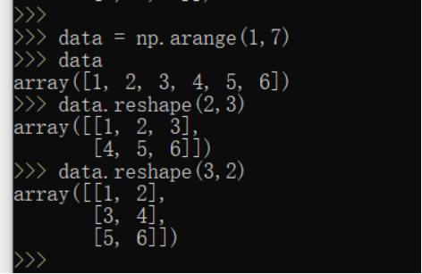 有时可能还需要转换矩阵的维度,例如,当需要输入确定形状的数组,但已有的数据并非如此。这就是重塑方法应用的情景。只需输入新矩阵所需的新维度即可。