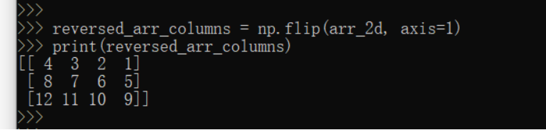 要阅读更多关于反转数组的内容,请打开flip:https://numpy.org/doc/stable/reference/generated/numpy.flip.html#numpy.flip。