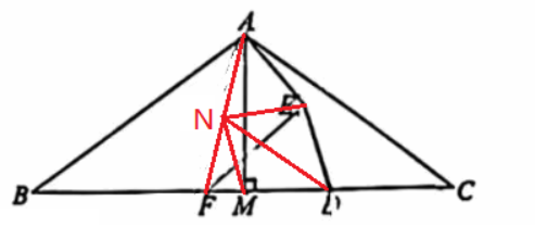 现在只要证明NE=NF,就行了。由于△AMF是直角三角形,连接NM,如下图,